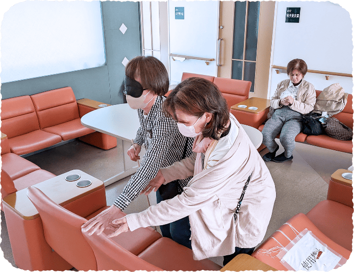 一人でも多くの方々に、街中で気軽に視覚障がい者に声をかけていただけたらと、心と技術を得るための学習会を行っています。
