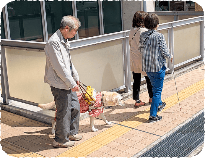 白杖や盲導犬を使って歩いておられる視覚障がい者と出会ったとき、貴方は、どのように声をかければよいのだろうと戸惑われたことはありませんか?私にも何かできるだろうか?と思っておられる方への講座です。